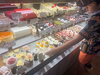 かき氷🍧を堪能したあと、会計のためショーケース🖼️の前へ。色とりどりの美しいケーキ🎂🍰🍮に、甥っ子👦🏻の目はもう釘付け👀です。