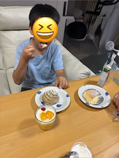 美味しいスイーツ🍰🍧🍮と、甥っ子👦🏻の最高の笑顔😊。パティスリーメイさん、素敵な夏の思い出をありがとうございました💐!