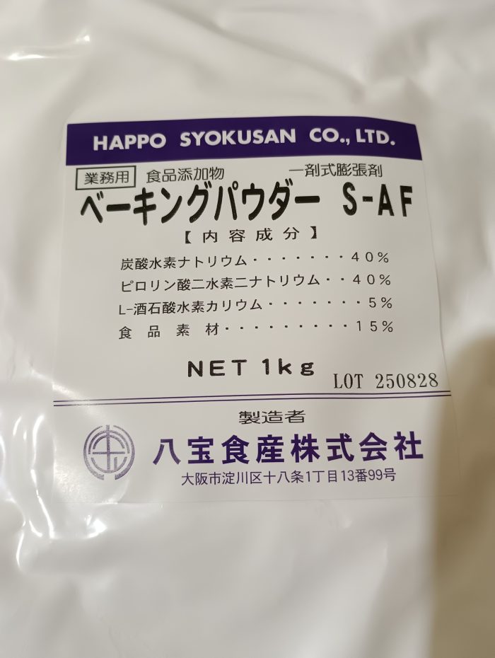 🥄 ベーキングパウダー:八宝食産様【ベーキングパウダーS-AF】 一袋1kgと大容量!お菓子作りを頻繁にする人にはすごく助かる、頼れる存在です!