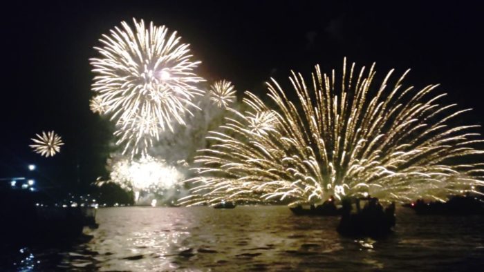 開始一時間前くらいに到着しまだかまだかと待機し気づいたら周囲には100隻を超える船が集まり大船団になっていました